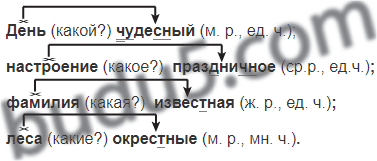 Какие имена существительные ты напишешь вместо точек? Запиши сочетания слов, укажи род и число существительных и прилагательных.