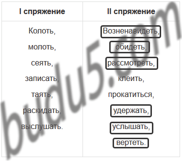 Обрати внимание, что глаголы, образованные с помощью приставок от глаголов-исключений, относятся к тому же спряжению, что и глагол без приставки (слышать - услышать - II спр.).