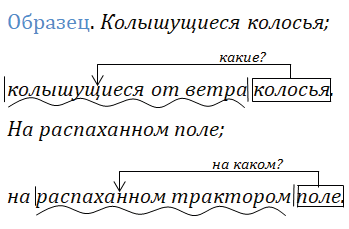 существительное" и причастные обороты со страдательными причастиями (вместе с определяемыми ими словами).