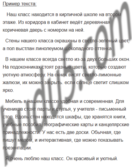Попробуйте составить текст-описание своей классной комнаты. Можете воспользоваться вопросами.