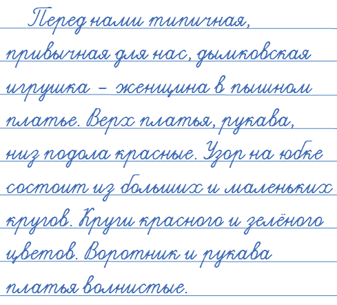 Рассмотрите рисунок дымковских игрушек. Опишите одну из них, используя однородные члены предложения. Запишите составленный текст.