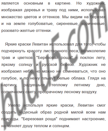 1. Внимательно рассмотрите на вклейке (с. 3) репродукцию картины Исаака Ильича Левитана (1860—1900) «Берёзовая роща» (1885—1889).