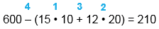 600 - (15 • 10 + 12 • 20) = 210