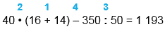 40 • (16 + 14) - 350 : 50 = 1 193