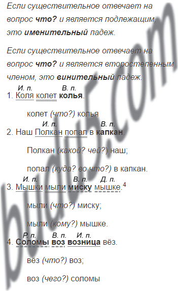 Чтобы определить падеж выделенных имён существительных, необходимо задать к ним вопрос. Если это вопрос что?, то поставьте к слову двойной падежный вопрос - кто? что? или кого? что?. Если подойдёт пара кого? что?, то перед вами существительное в В. п. Если кто? что? - в И. п.