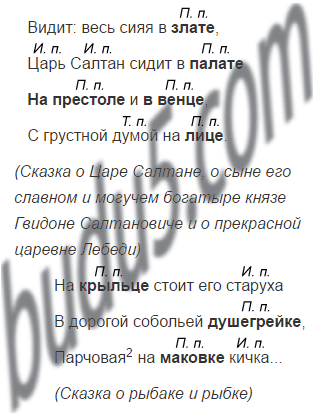Первое четверостишие из сказки А. С. Пушкина "Сказка о Царе Салтане, о сыне его славном и могучем богатыре князе Гвидоне Салтановиче и о прекрасной царевне Лебеди". Второе четверостишие из сказки А. С. Пушкина "Сказка о рыбаке и рыбке".