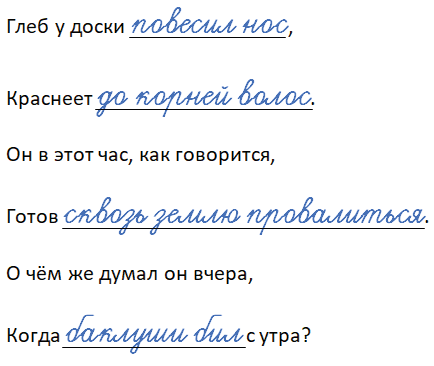 Прочитайте. Впишите пропущенные фразеологизмы.