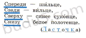 Наречия загадки отвечают на вопросы где? (спереди, сзади, сверху, снизу).
