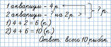 В классе два маленьких аквариума. В первом аквариуме 4 рыбки, а во втором - на 2 рыбки больше.