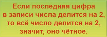 Числа, которые делятся на 2 без остатка, называются чётными, а числа, которые не делятся на 2 без остатка, называются нечётными.